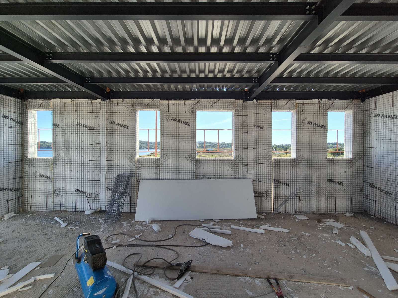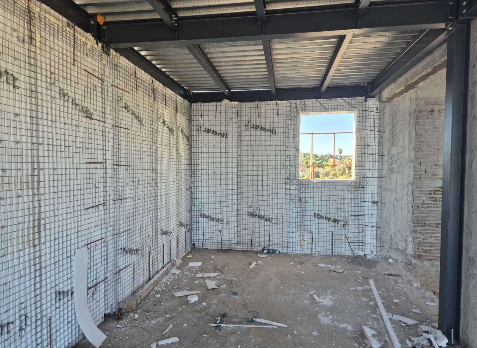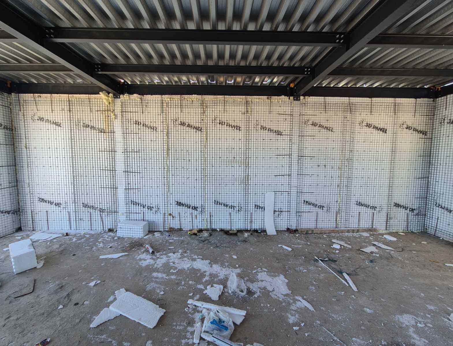 Ολοκλήρωση του συστήματος οπλισμένης τοιχοποιίας 3D Panel με την εκτόξευση ενισχυμένης τσιμεντοκονίας και τελικού επιχρίσματος.