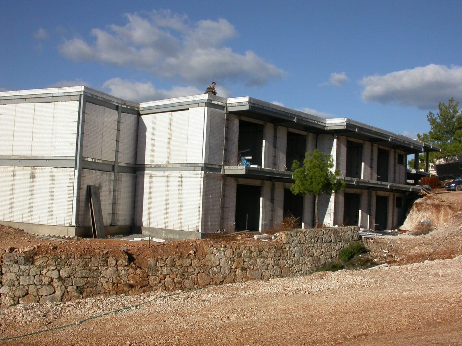 Ολοκλήρωση του συστήματος οπλισμένης τοιχοποιίας 3D Panel με την εκτόξευση ενισχυμένης τσιμεντοκονίας και τελικού επιχρίσματος.