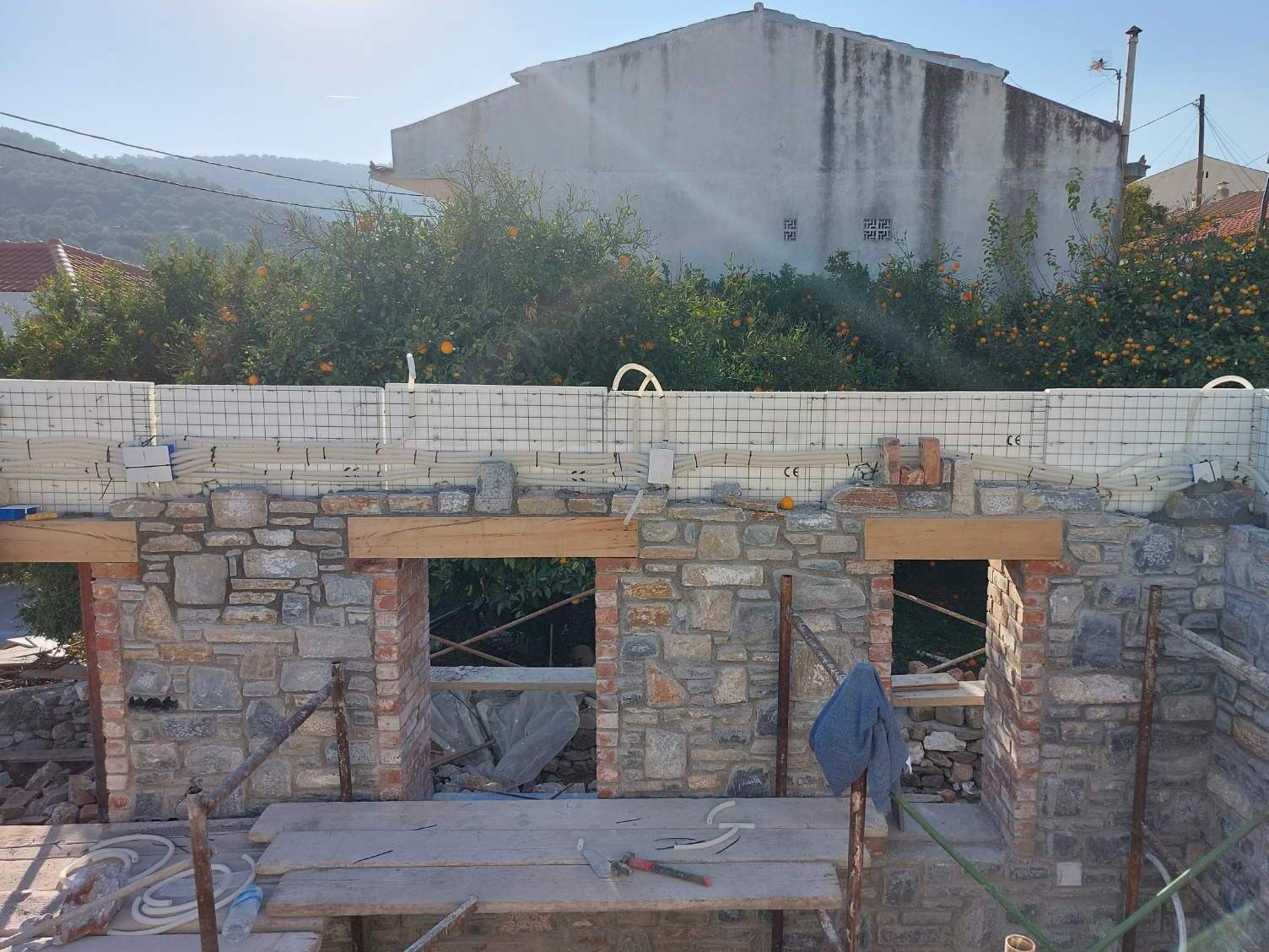 Εφαρμογή του συστήματος οπλισμένης τοιχοποιίας 3D Panel σε κατασκευή με φέρουσα πετρόχτιστη τοιχοποιία.