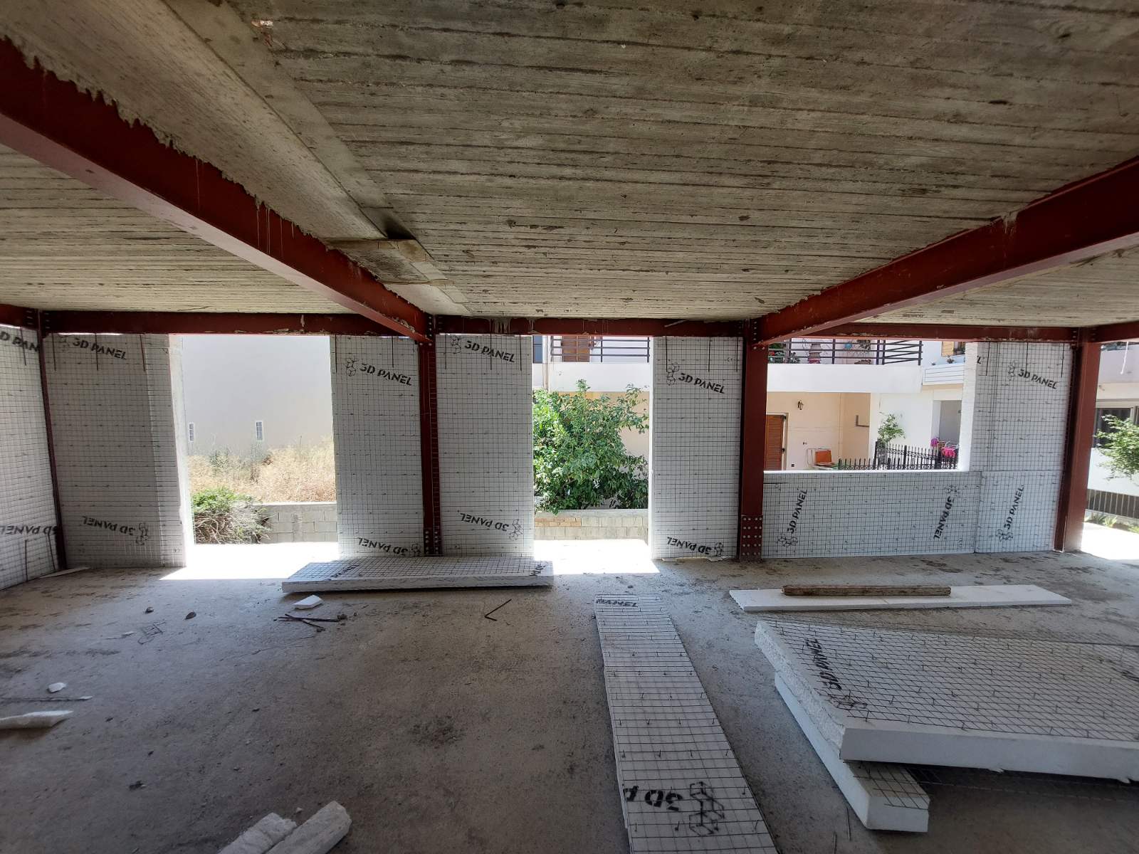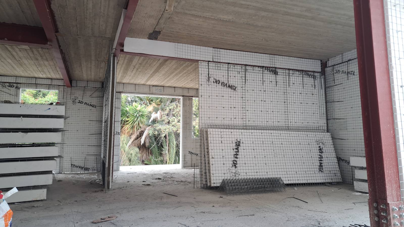 Ολοκλήρωση του συστήματος οπλισμένης τοιχοποιίας 3D Panel με την εκτόξευση ενισχυμένης τσιμεντοκονίας και τελικού επιχρίσματος.