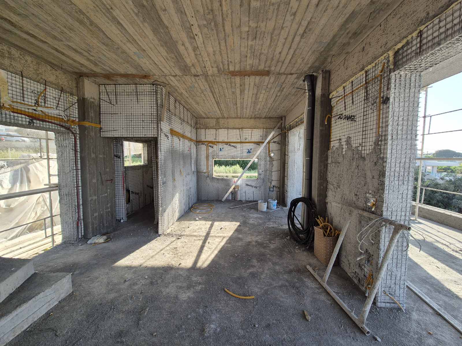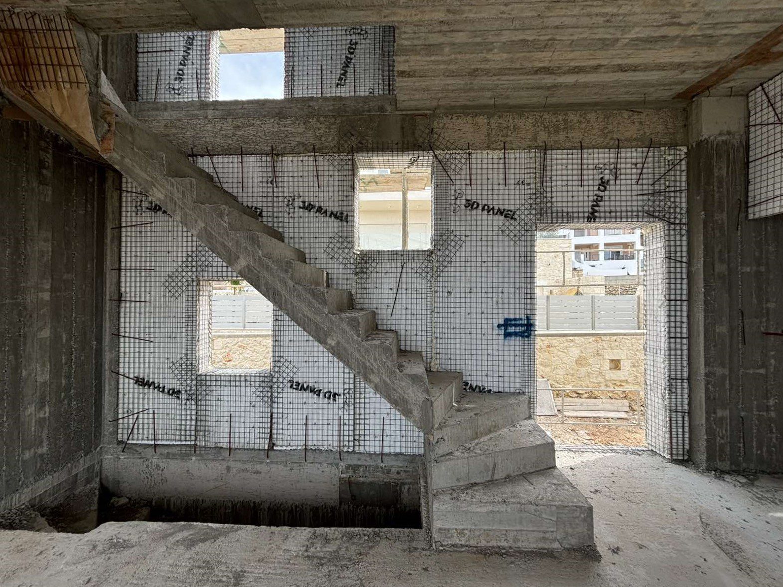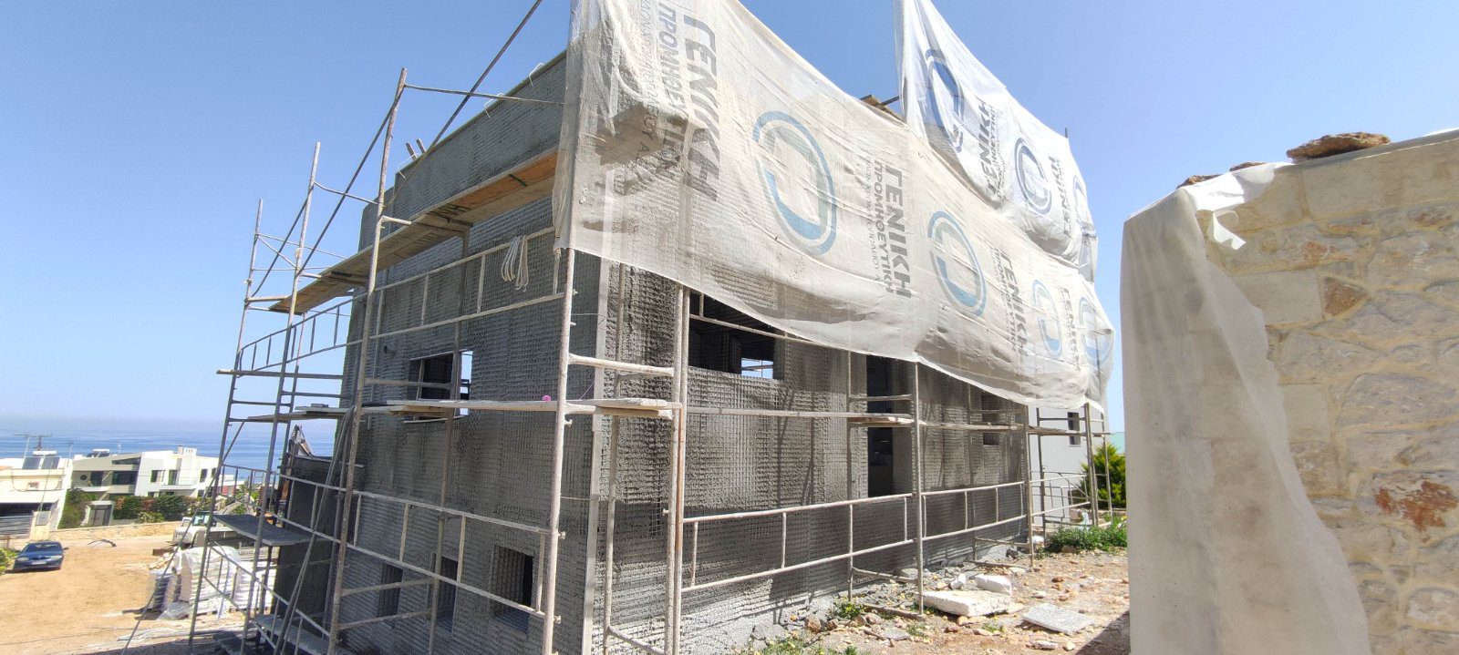 Ολοκλήρωση του συστήματος οπλισμένης τοιχοποιίας 3D Panel με την εκτόξευση ενισχυμένης τσιμεντοκονίας και τελικού επιχρίσματος.