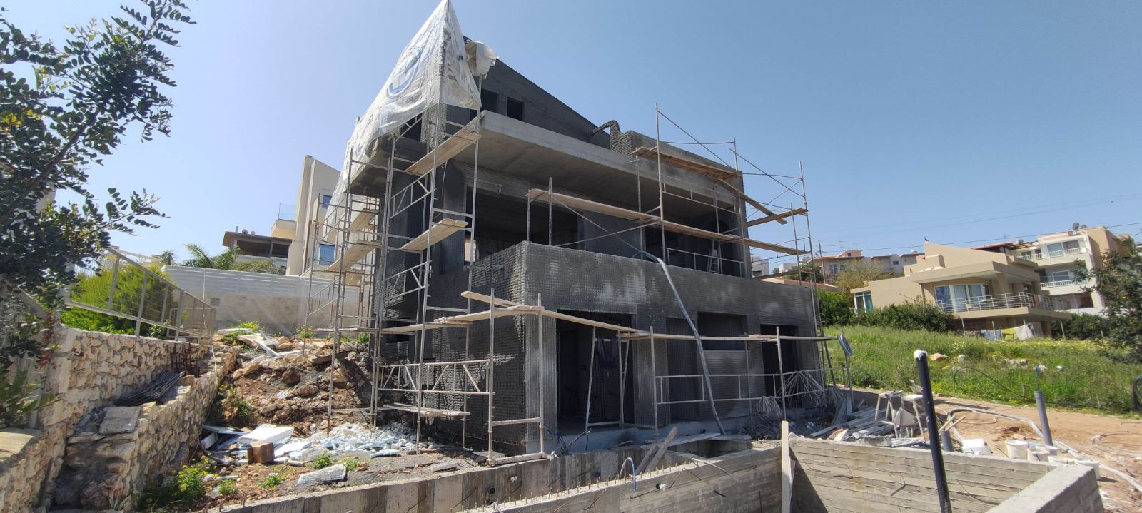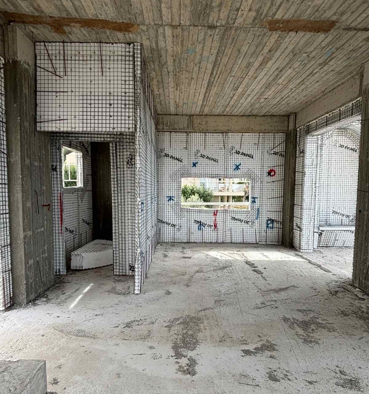 Εφαρμογή του συστήματος οπλισμένης τοιχοποιίας 3D Panel στις εξωτερικές τοιχοποιίες και εφαρμογή οπλισμένης θερμοπρόσοψης 3D Panel για τις επικαλύψεις του φέροντος οργανισμού, σε κατασκευή με φέροντα οργανισμό από οπλισμένο σκυρόδεμα.