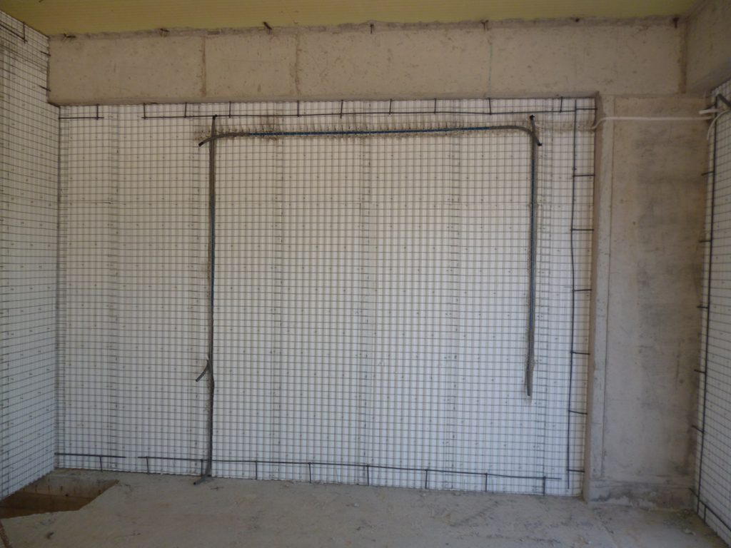 Ολοκλήρωση του συστήματος οπλισμένης τοιχοποιίας 3D Panel με την εκτόξευση ενισχυμένης τσιμεντοκονίας και τελικού επιχρίσματος.