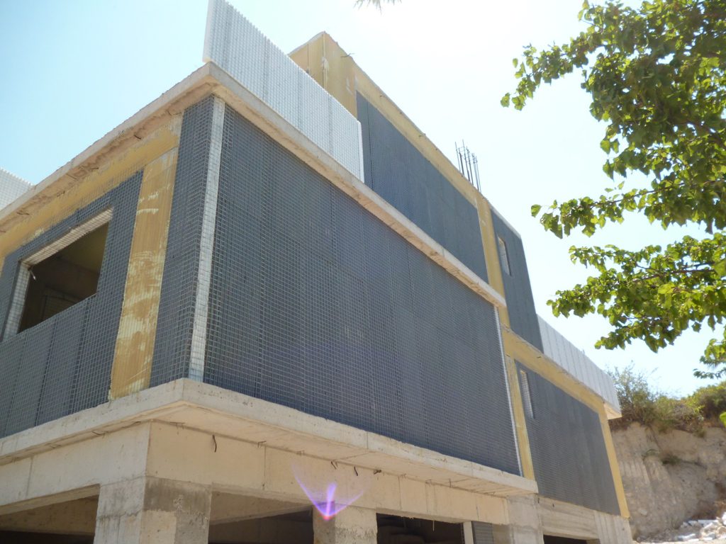 Εφαρμογή του συστήματος οπλισμένης τοιχοποιίας 3D Panel στις εξωτερικές τοιχοποιίες και εφαρμογή οπλισμένης θερμοπρόσοψης 3D Panel για τις επικαλύψεις του φέροντος οργανισμού, σε κατασκευή με φέροντα οργανισμό από οπλισμένο σκυρόδεμα.