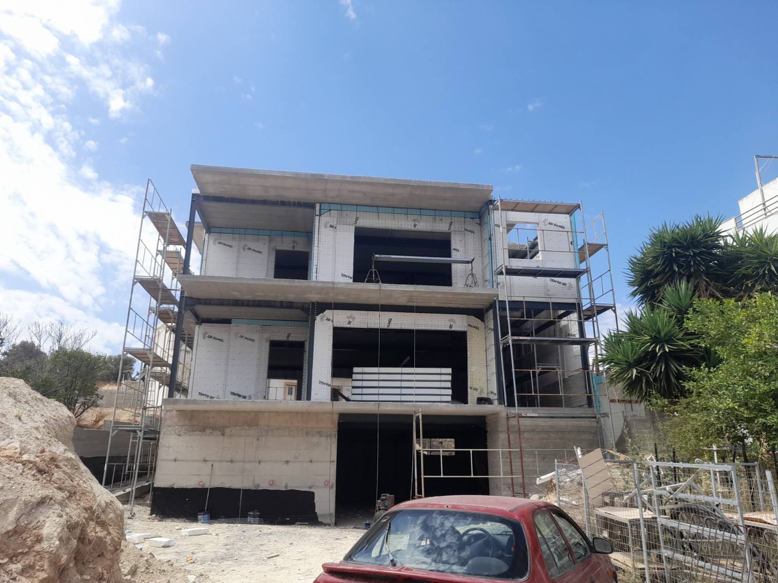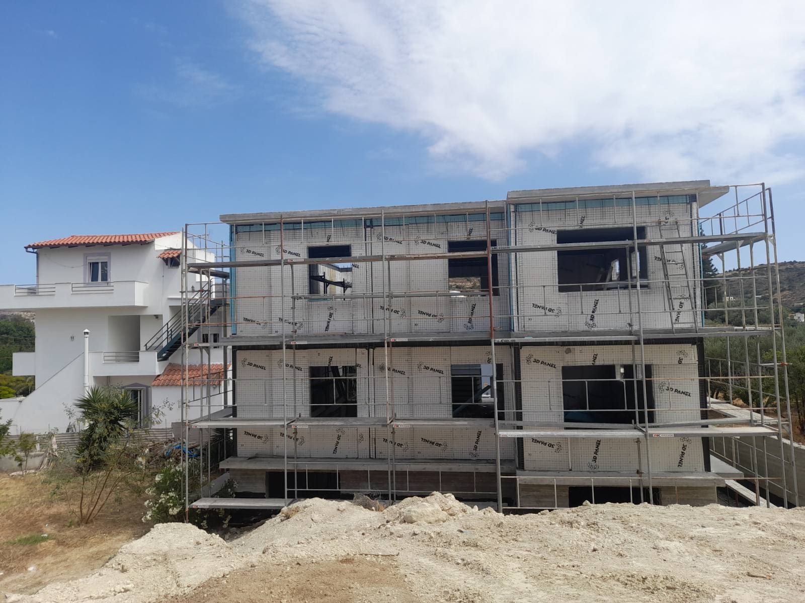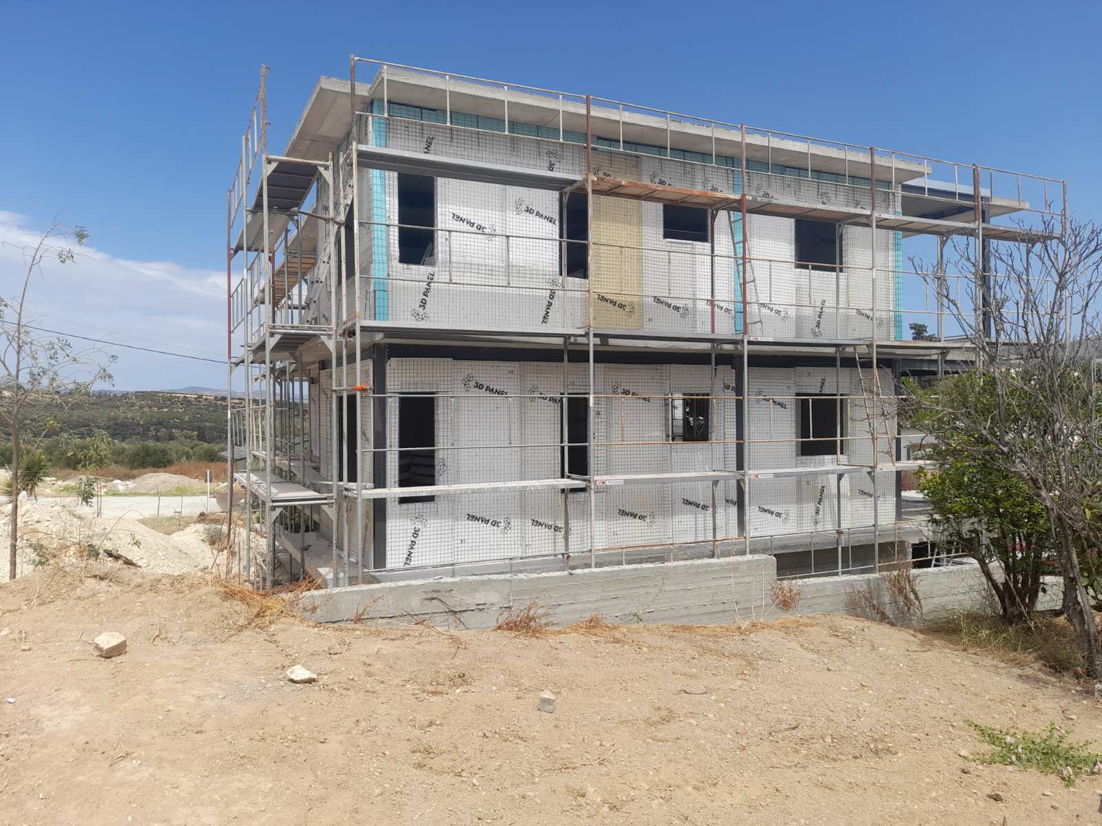 Ολοκλήρωση του συστήματος οπλισμένης τοιχοποιίας 3D Panel με την εκτόξευση ενισχυμένης τσιμεντοκονίας και τελικού επιχρίσματος.
