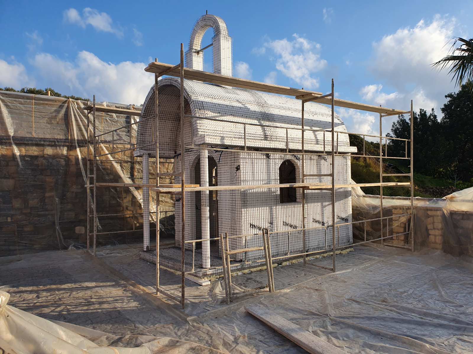 Κατασκευή από πρότυπες μεταλλικές διατομές με εφαρμογή του συστήματος οπλισμένης τοιχοποιίας 3D Panel στις εξωτερικές τοιχοποιίες και στις αρχιτεκτονικές διαμορφώσεις ( Θόλοι, Τρούλος κτλ. )