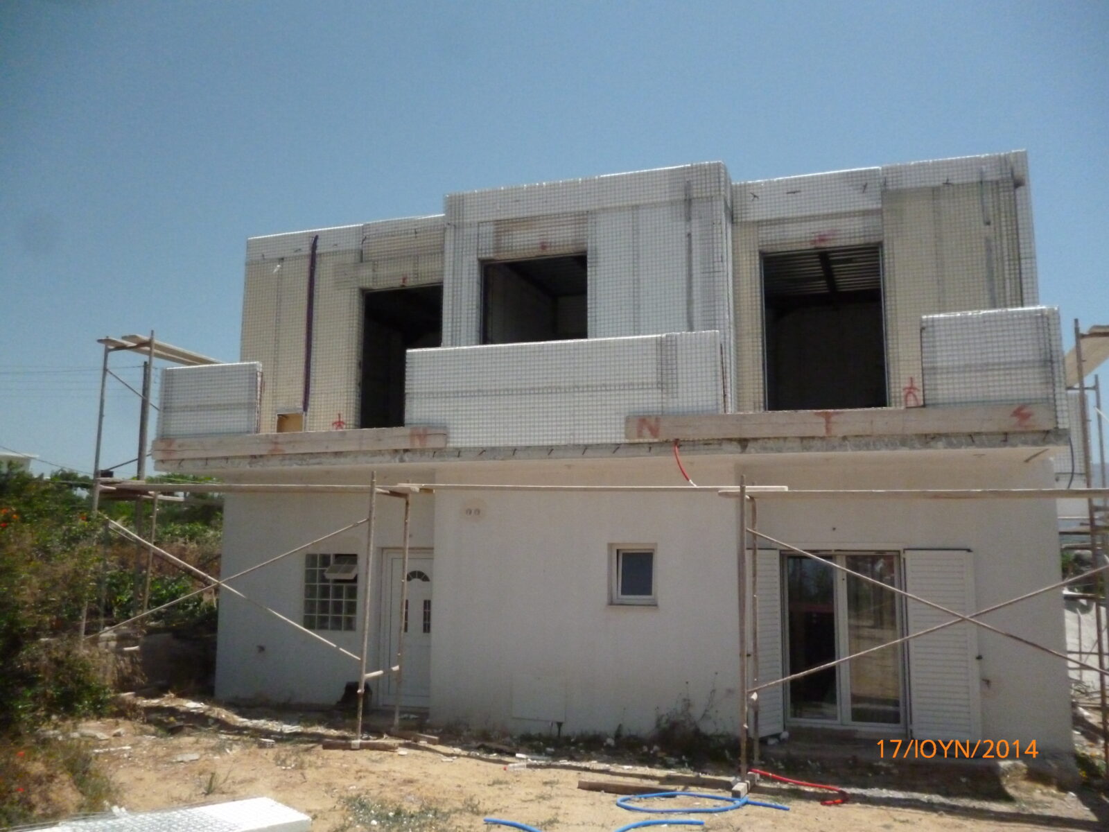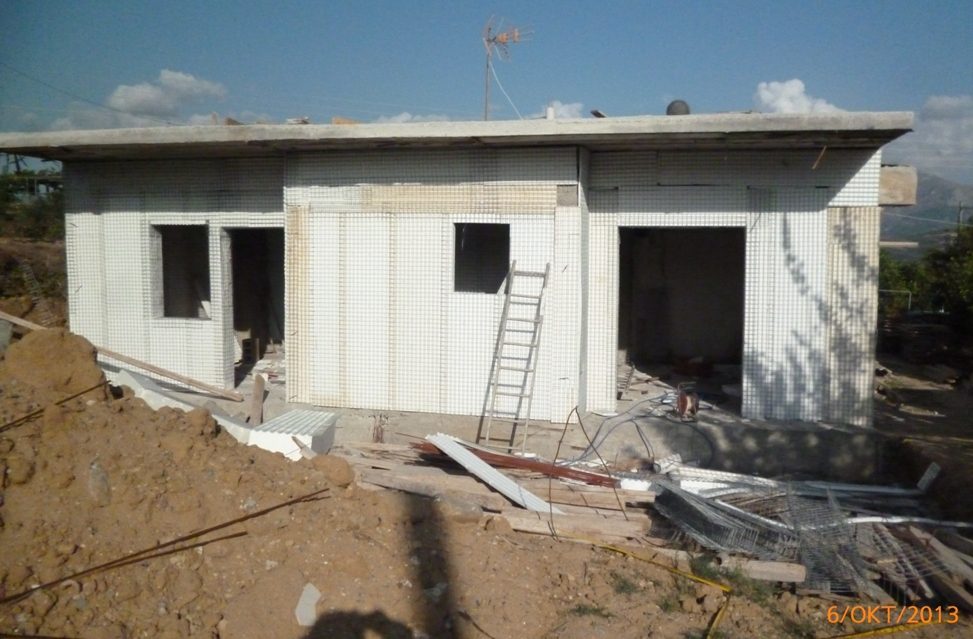 Εφαρμογή του συστήματος οπλισμένης τοιχοποιίας 3D Panel στις εξωτερικές τοιχοποιίες και εφαρμογή οπλισμένης θερμοπρόσοψης 3D Panel για τις επικαλύψεις του φέροντος οργανισμού, σε κατασκευή επέκτασης κατοικίας ισογείου με φέροντα οργανισμό από οπλισμένο σκυρόδεμα.