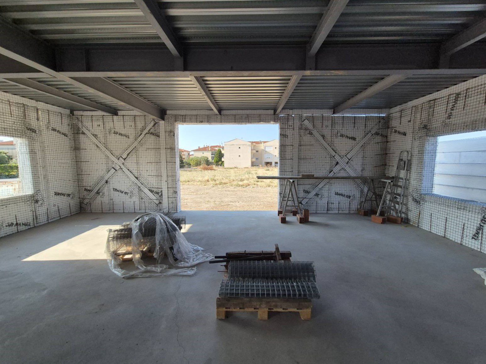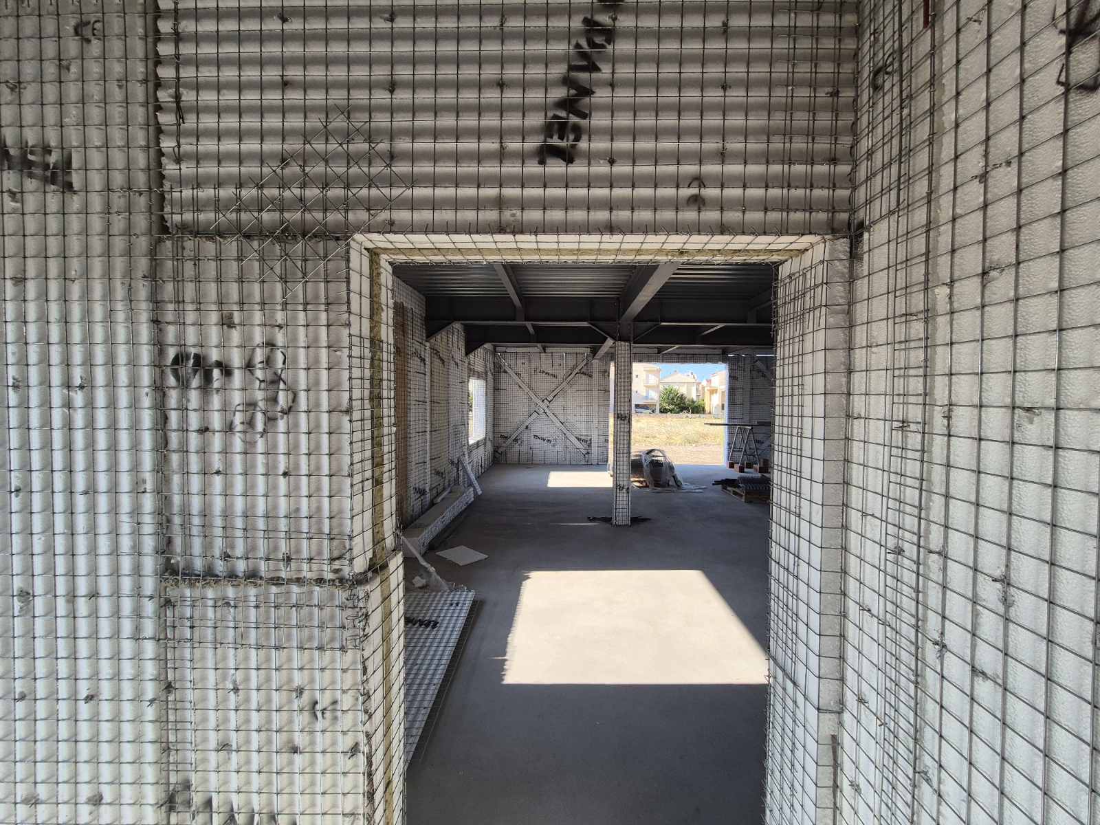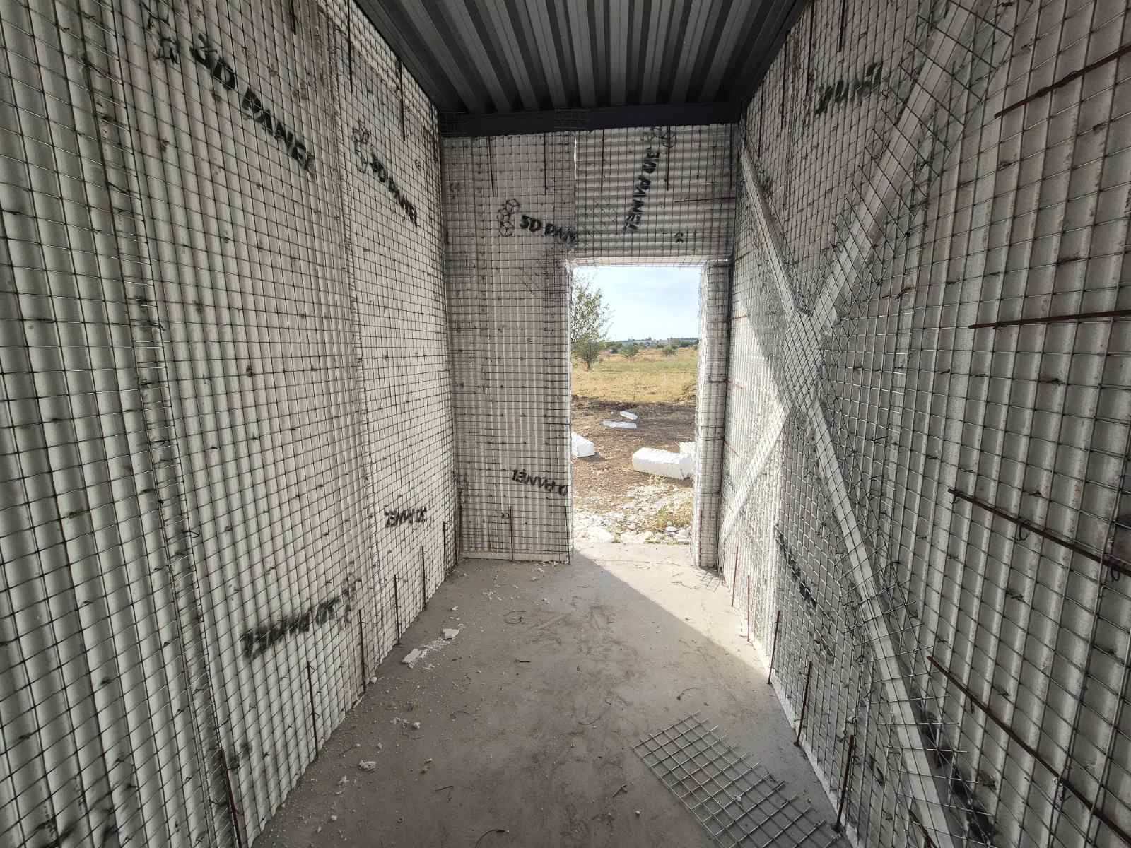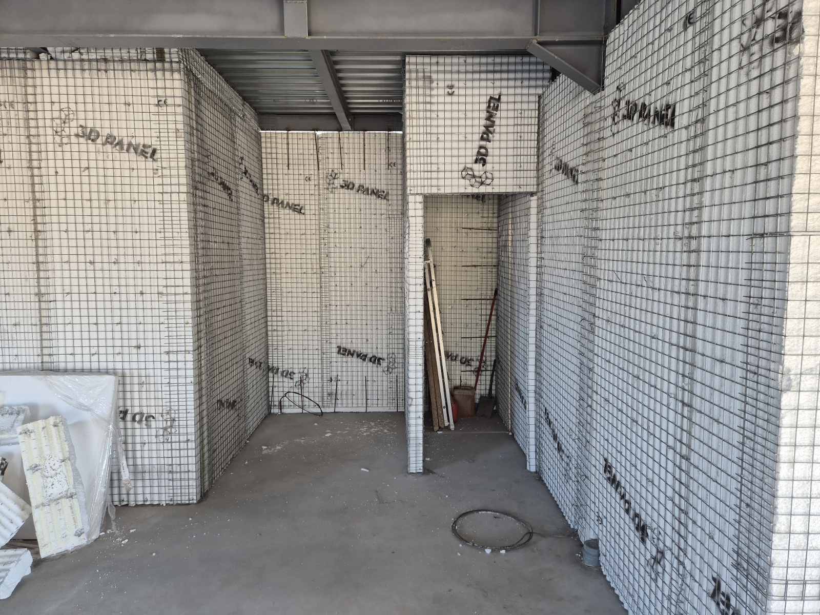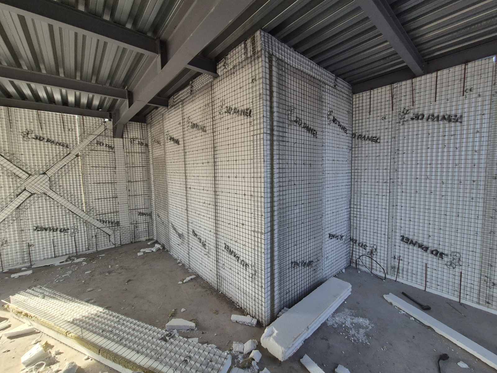 Ολοκλήρωση του συστήματος οπλισμένης τοιχοποιίας 3D Panel με την εκτόξευση ενισχυμένης τσιμεντοκονίας και τελικού επιχρίσματος.
