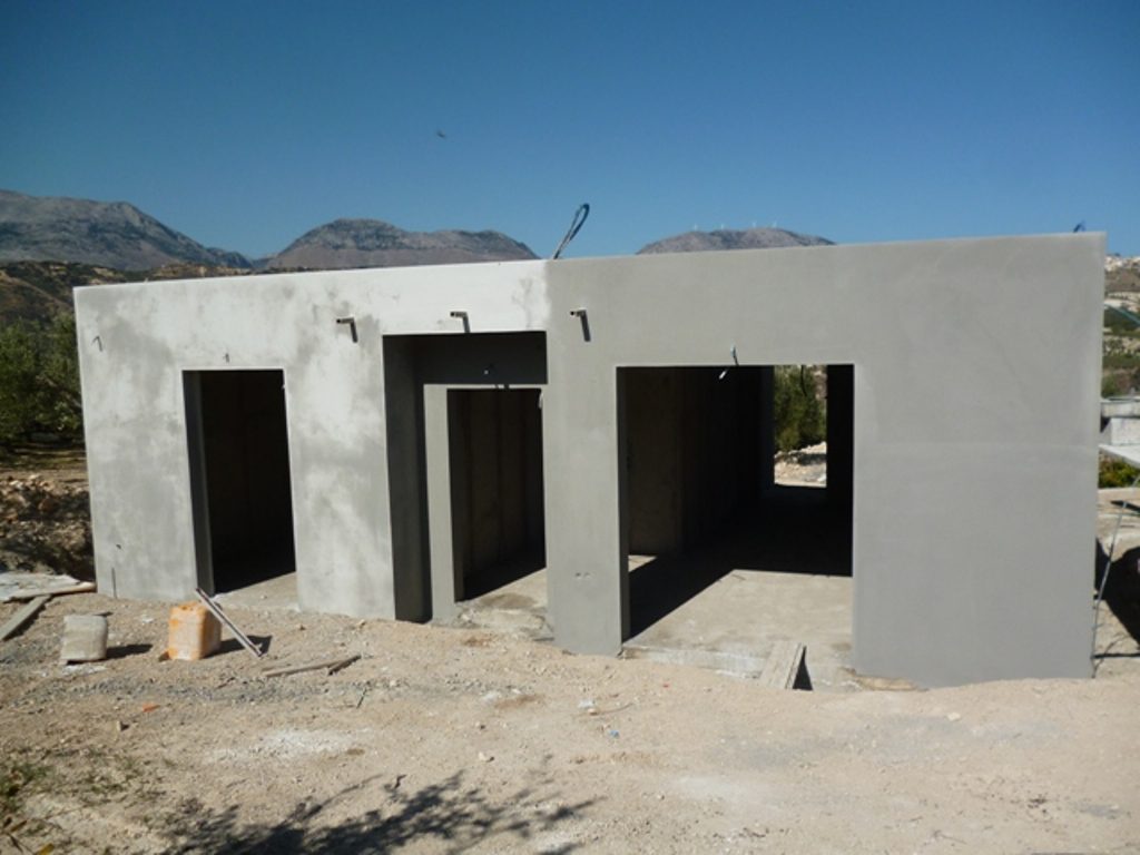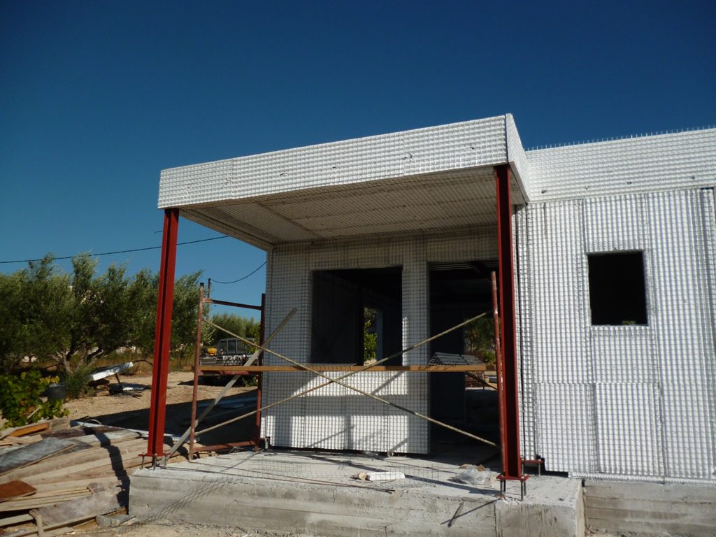 Ολοκλήρωση του συστήματος οπλισμένης τοιχοποιίας 3D Panel με την εκτόξευση ενισχυμένης τσιμεντοκονίας και τελικού επιχρίσματος.