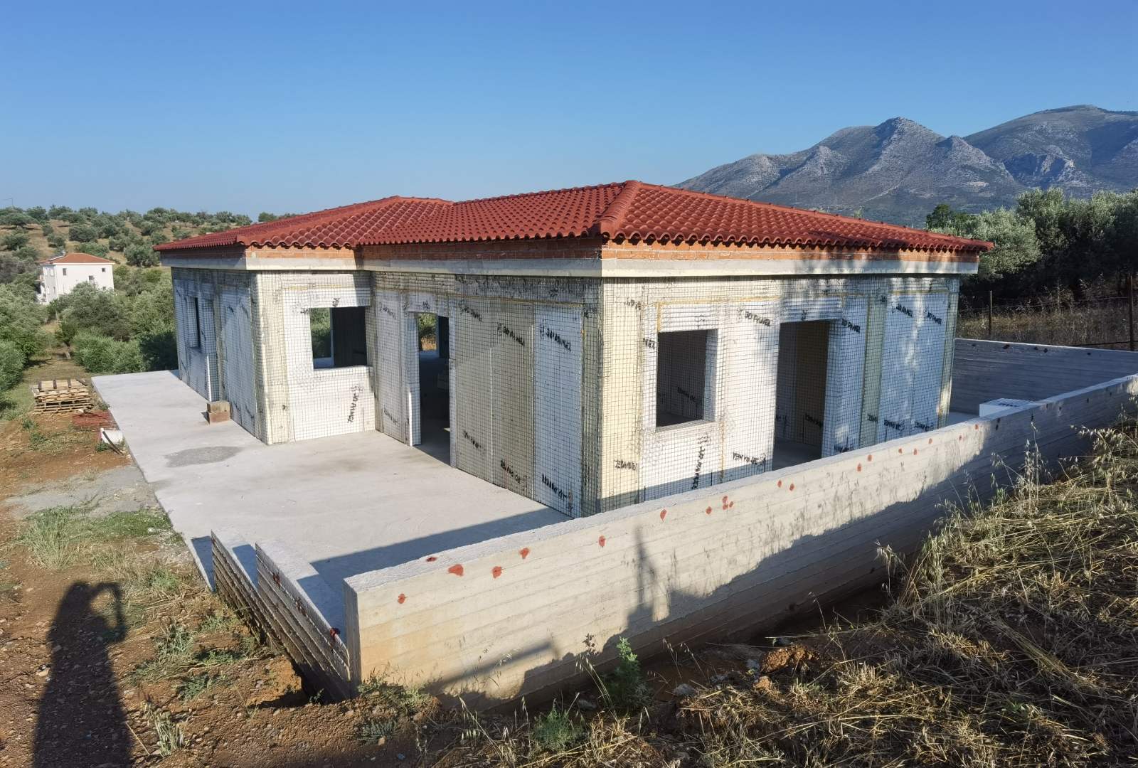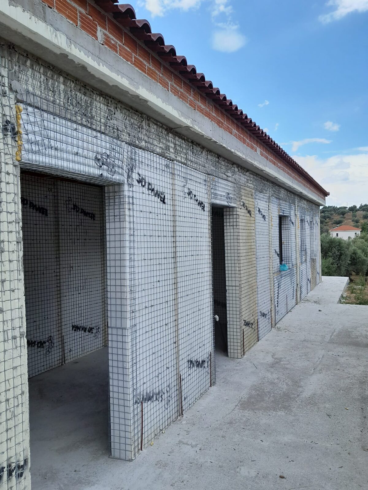 Εφαρμογή του συστήματος οπλισμένης τοιχοποιίας 3D Panel στις εξωτερικές τοιχοποιίες και εφαρμογή οπλισμένης θερμοπρόσοψης 3D Panel για τις επικαλύψεις του φέροντος οργανισμού, σε κατασκευή με φέροντα οργανισμό από οπλισμένο σκυρόδεμα.
