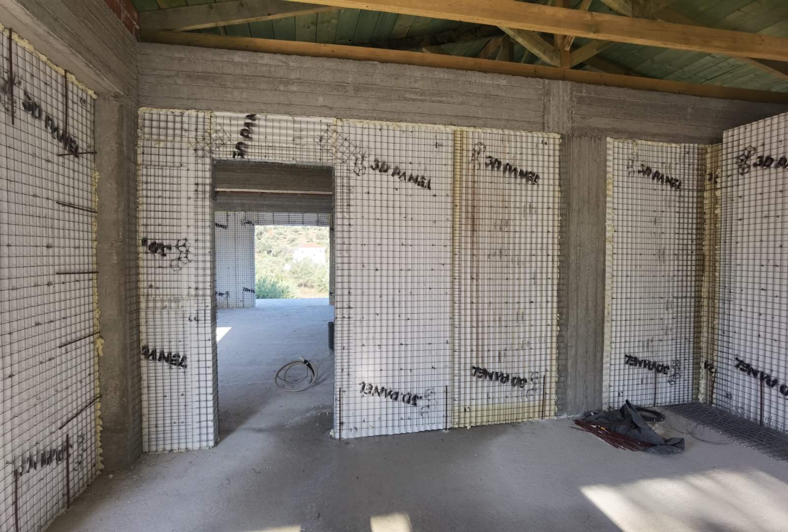 Ολοκλήρωση του συστήματος οπλισμένης τοιχοποιίας 3D Panel με την εκτόξευση ενισχυμένης τσιμεντοκονίας και τελικού επιχρίσματος.
