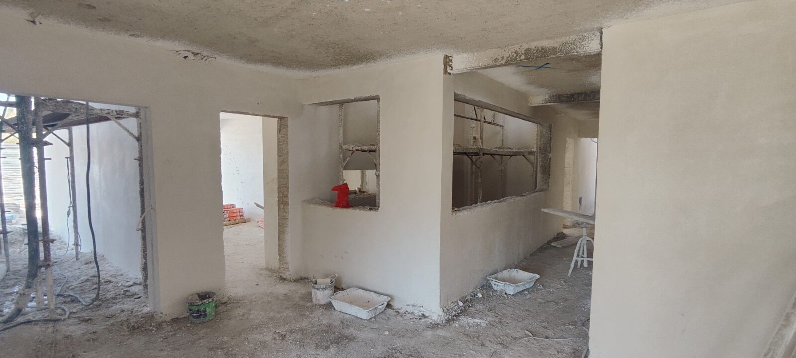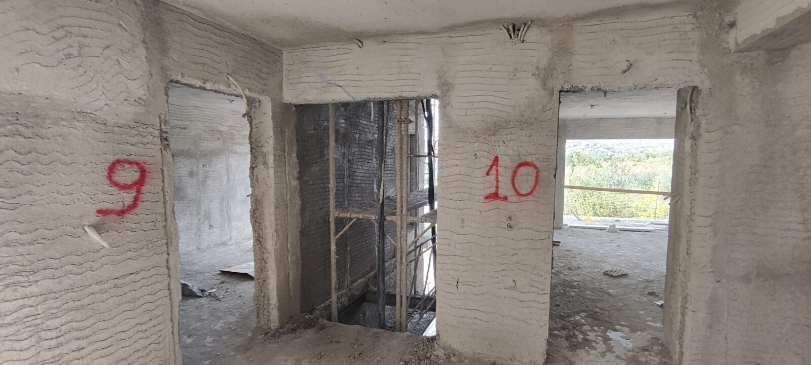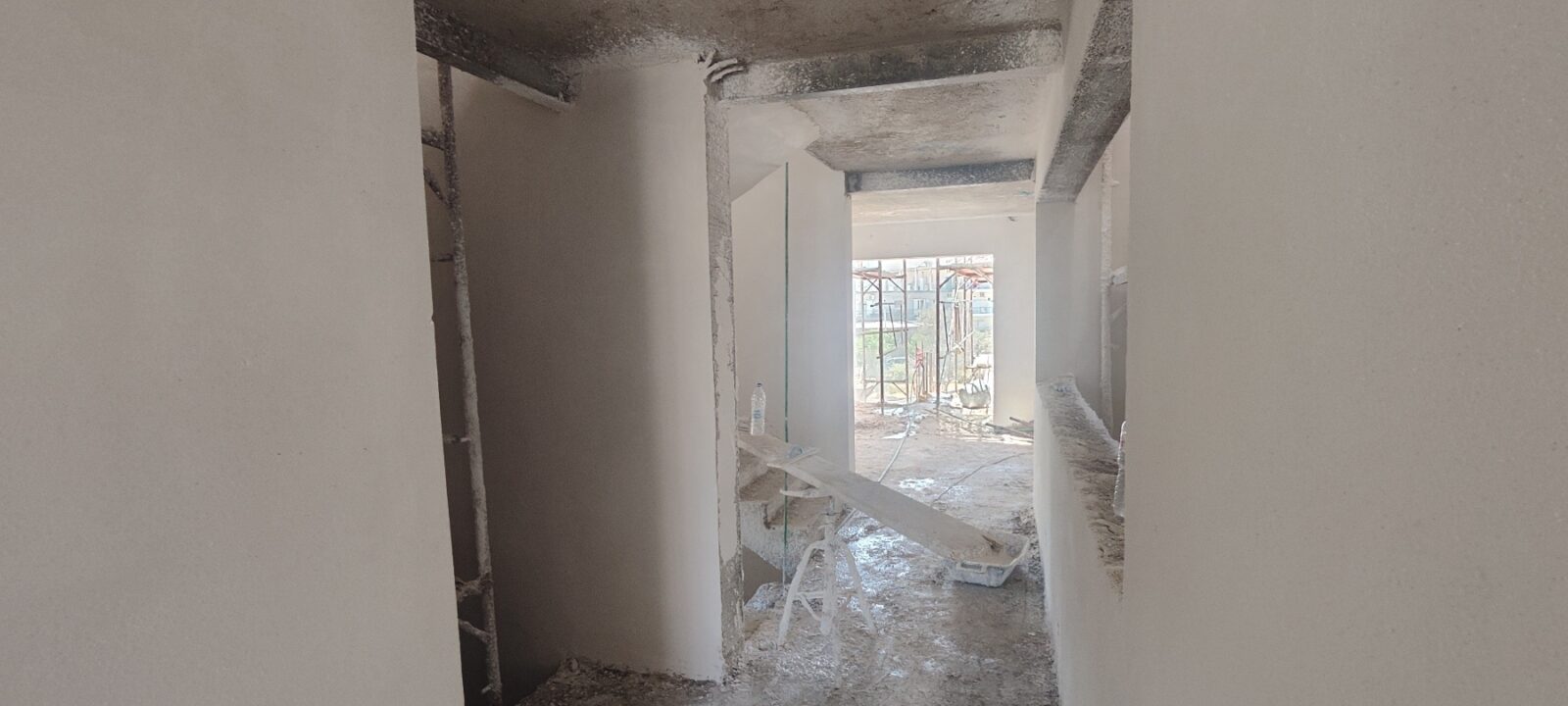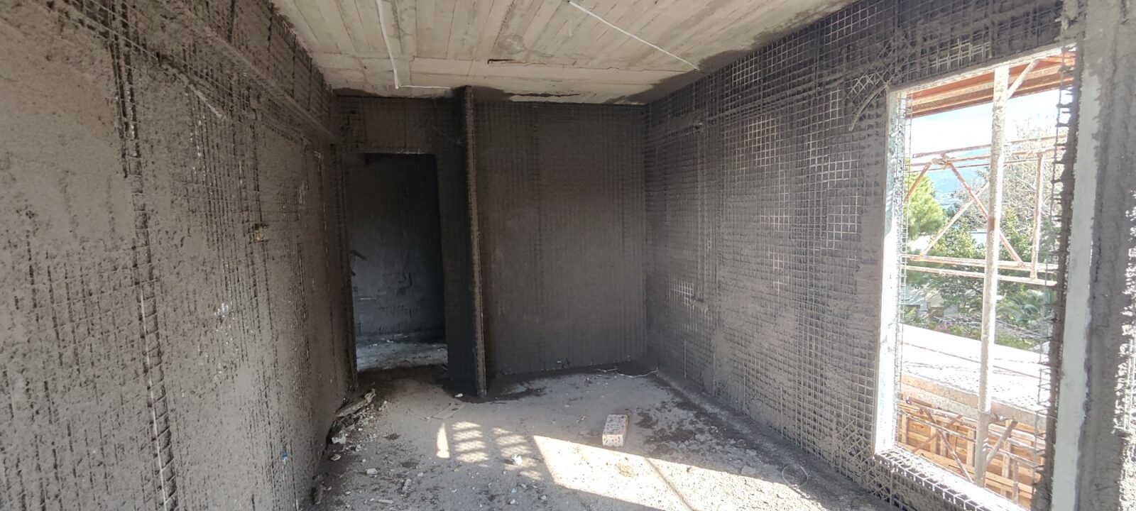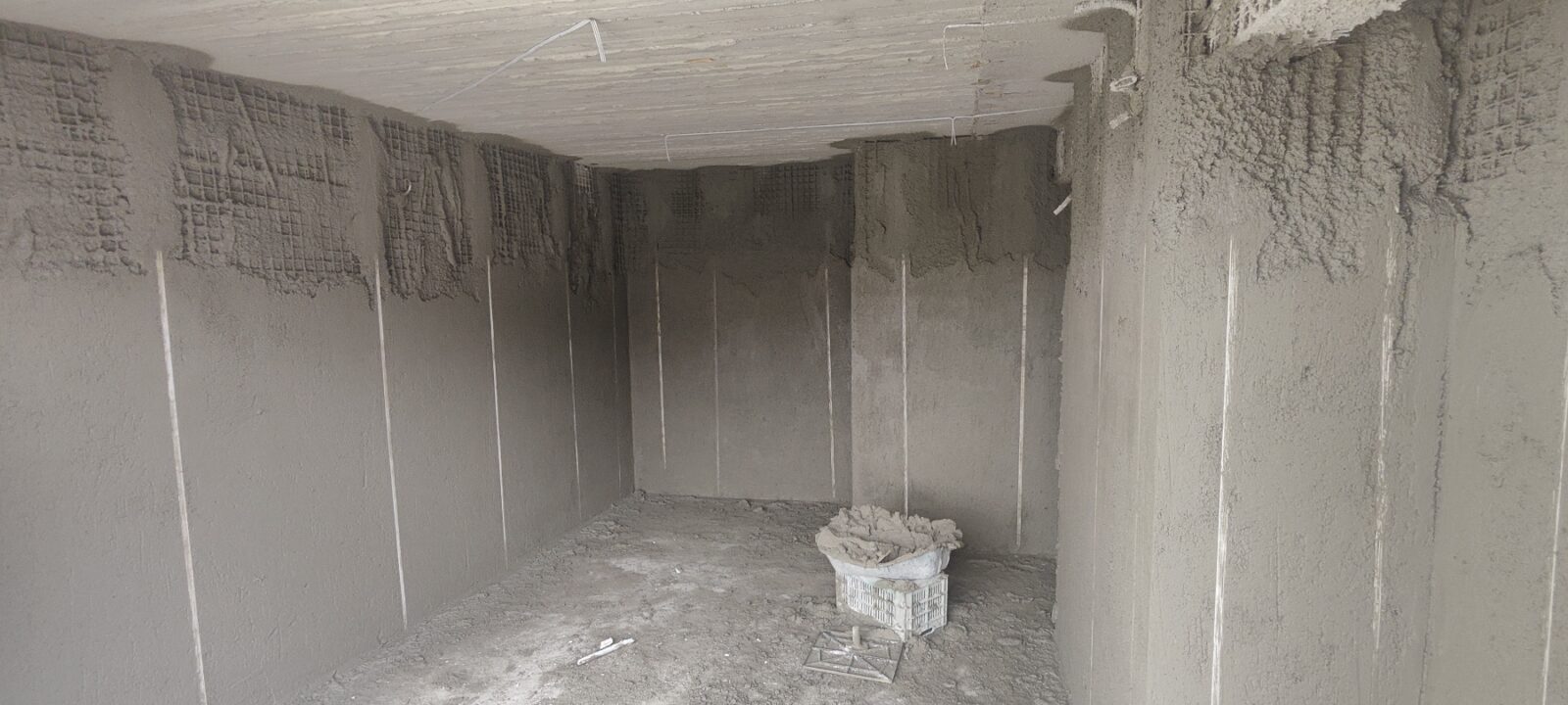 Ολοκλήρωση του συστήματος οπλισμένης τοιχοποιίας 3D Panel με την εκτόξευση ενισχυμένης τσιμεντοκονίας και τελικού επιχρίσματος.