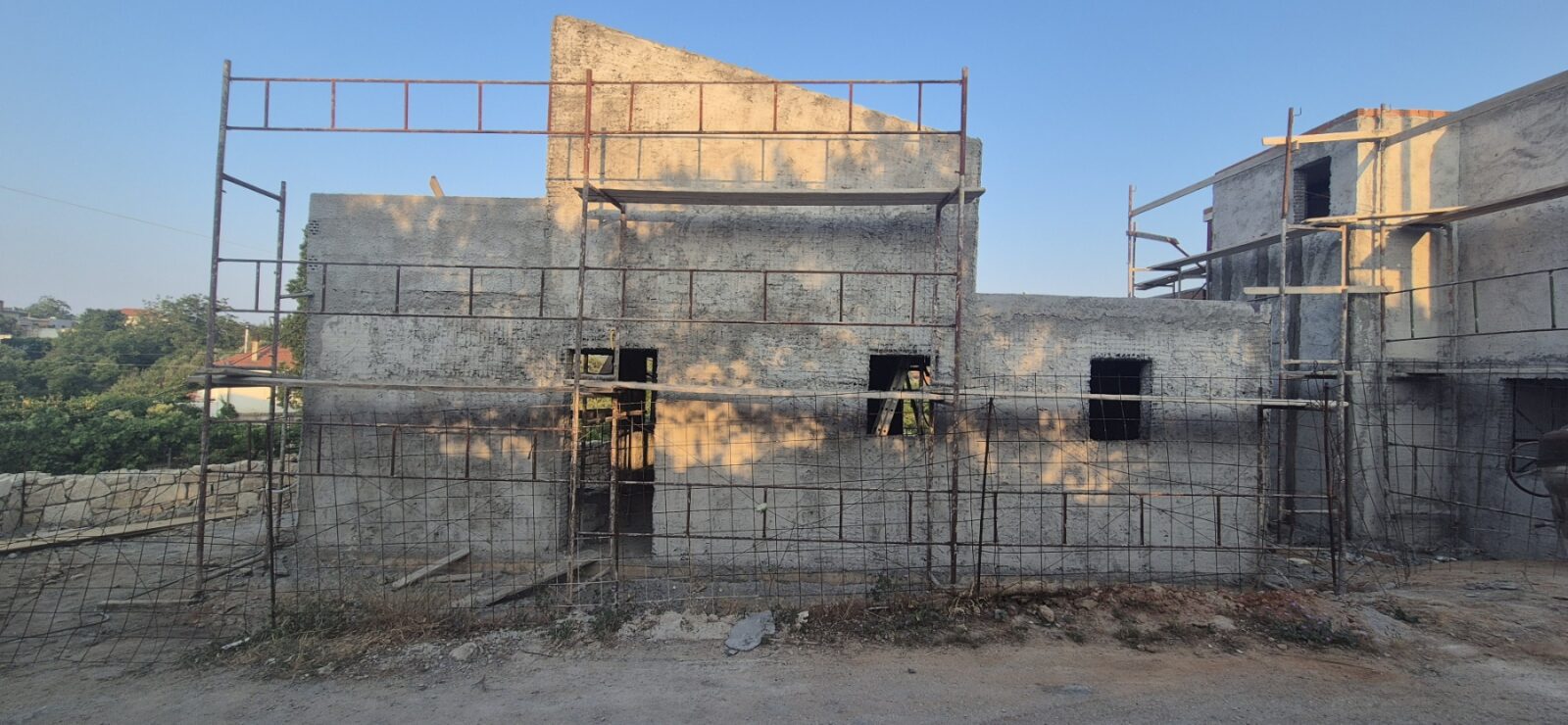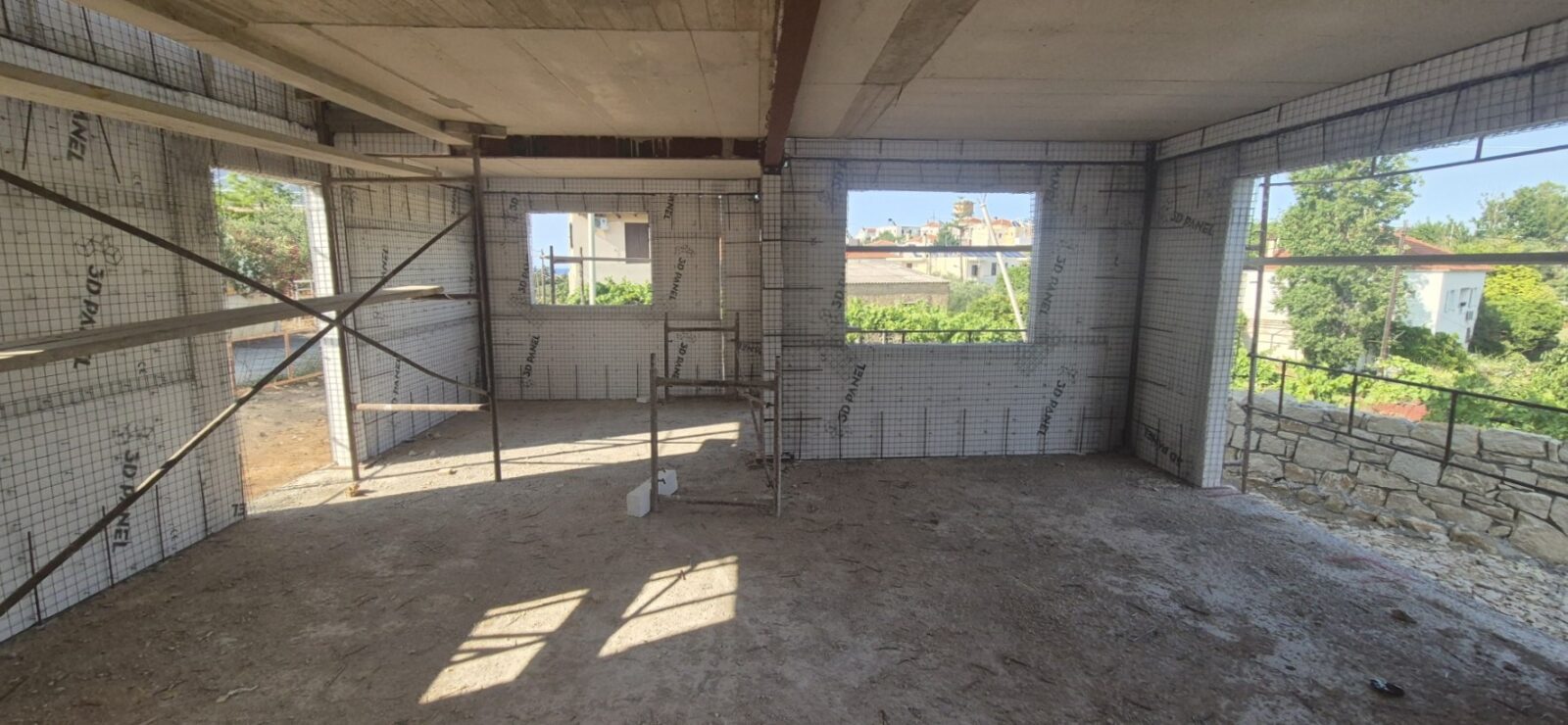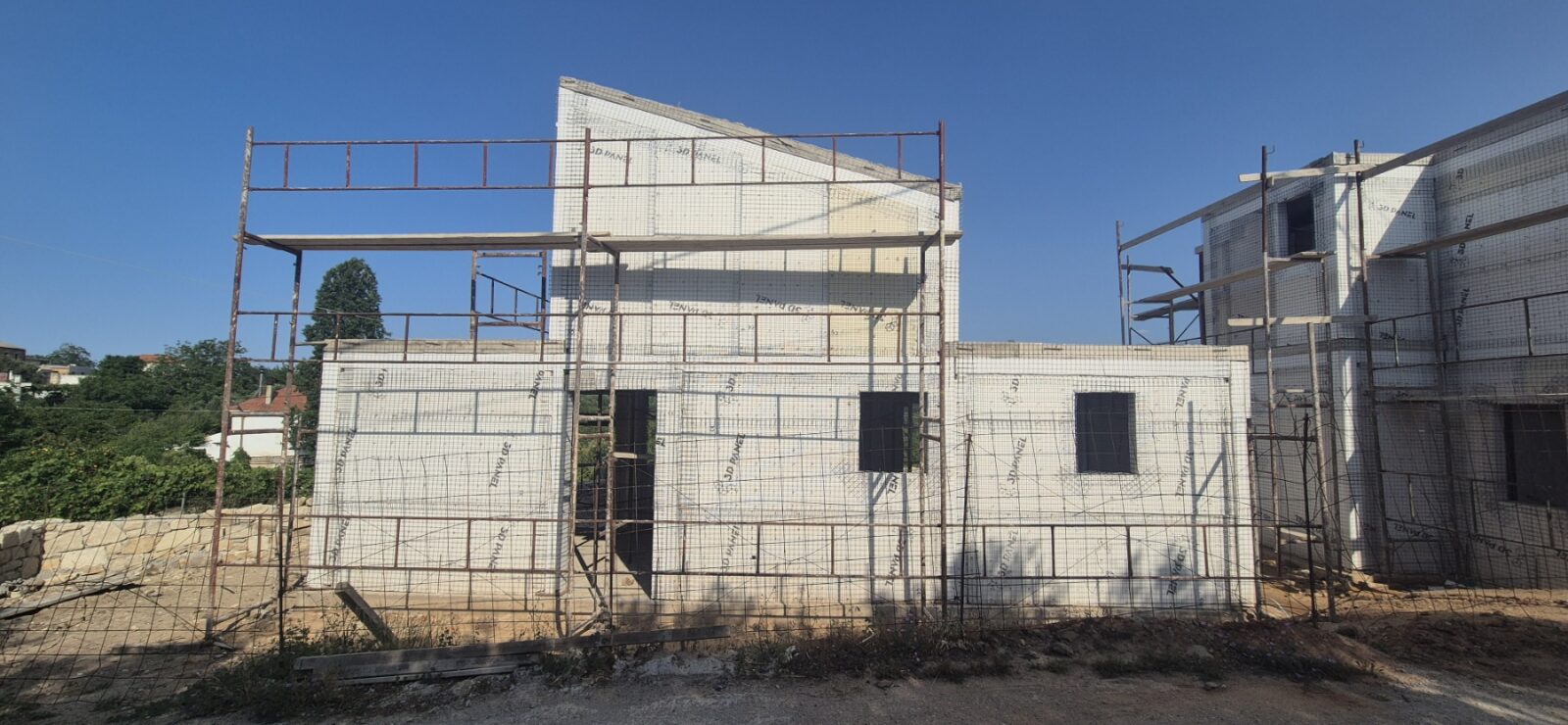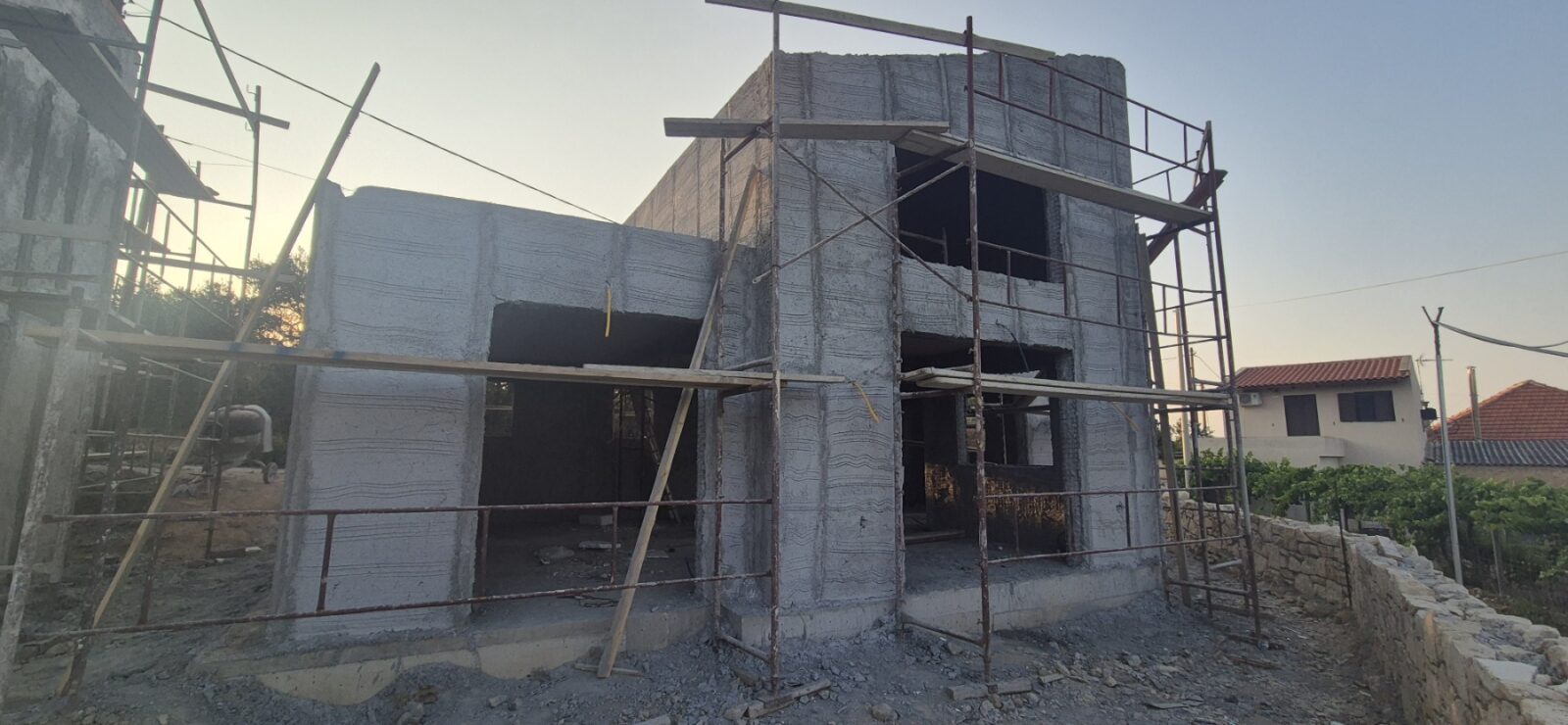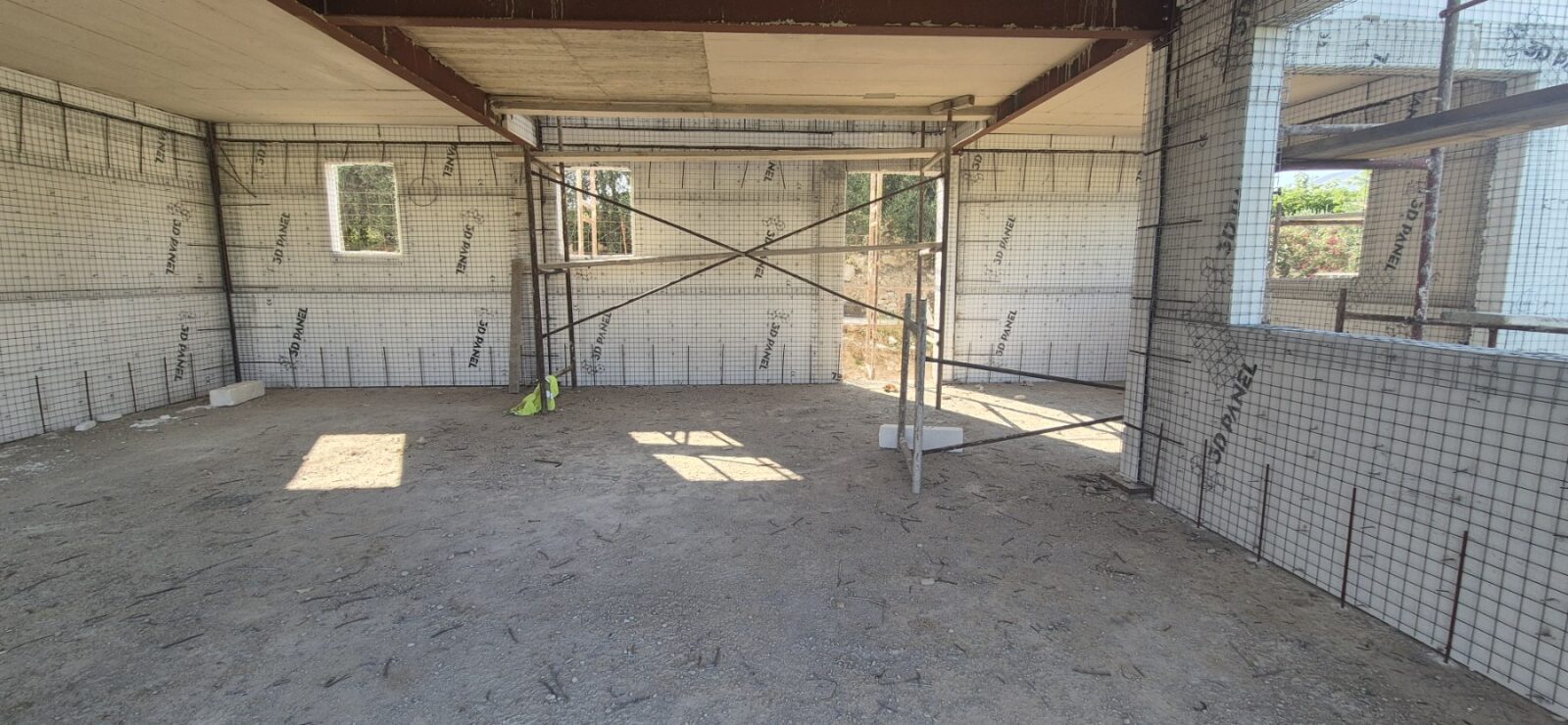 Ολοκλήρωση του συστήματος οπλισμένης τοιχοποιίας 3D Panel με την εκτόξευση ενισχυμένης τσιμεντοκονίας και τελικού επιχρίσματος.