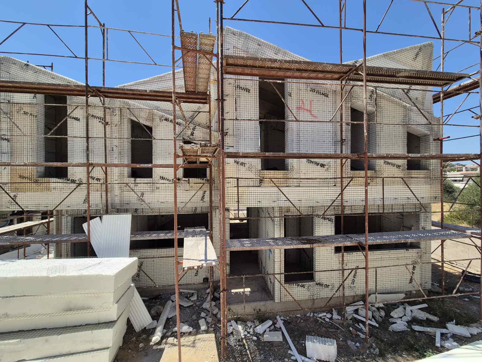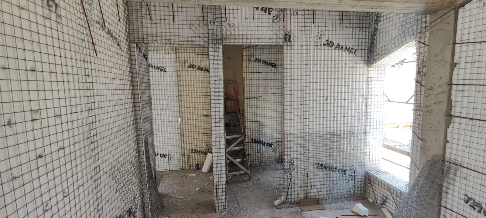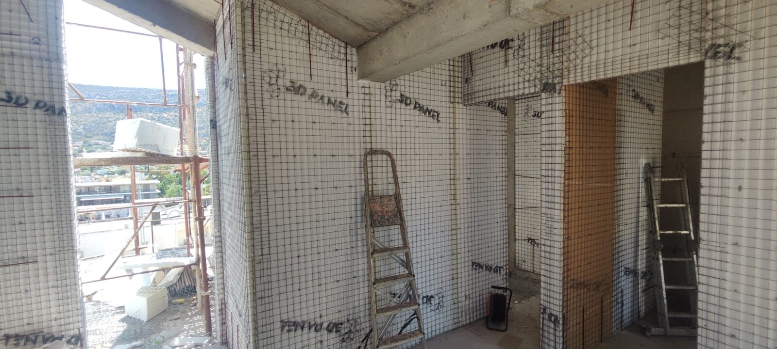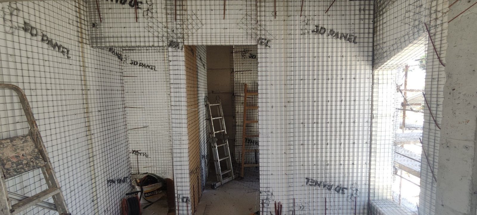 Εφαρμογή του συστήματος οπλισμένης τοιχοποιίας 3D Panel στις εξωτερικές τοιχοποιίες και εφαρμογή οπλισμένης θερμοπρόσοψης 3D Panel για τις επικαλύψεις του φέροντος οργανισμού, σε κατασκευή με φέροντα οργανισμό από οπλισμένο σκυρόδεμα.
