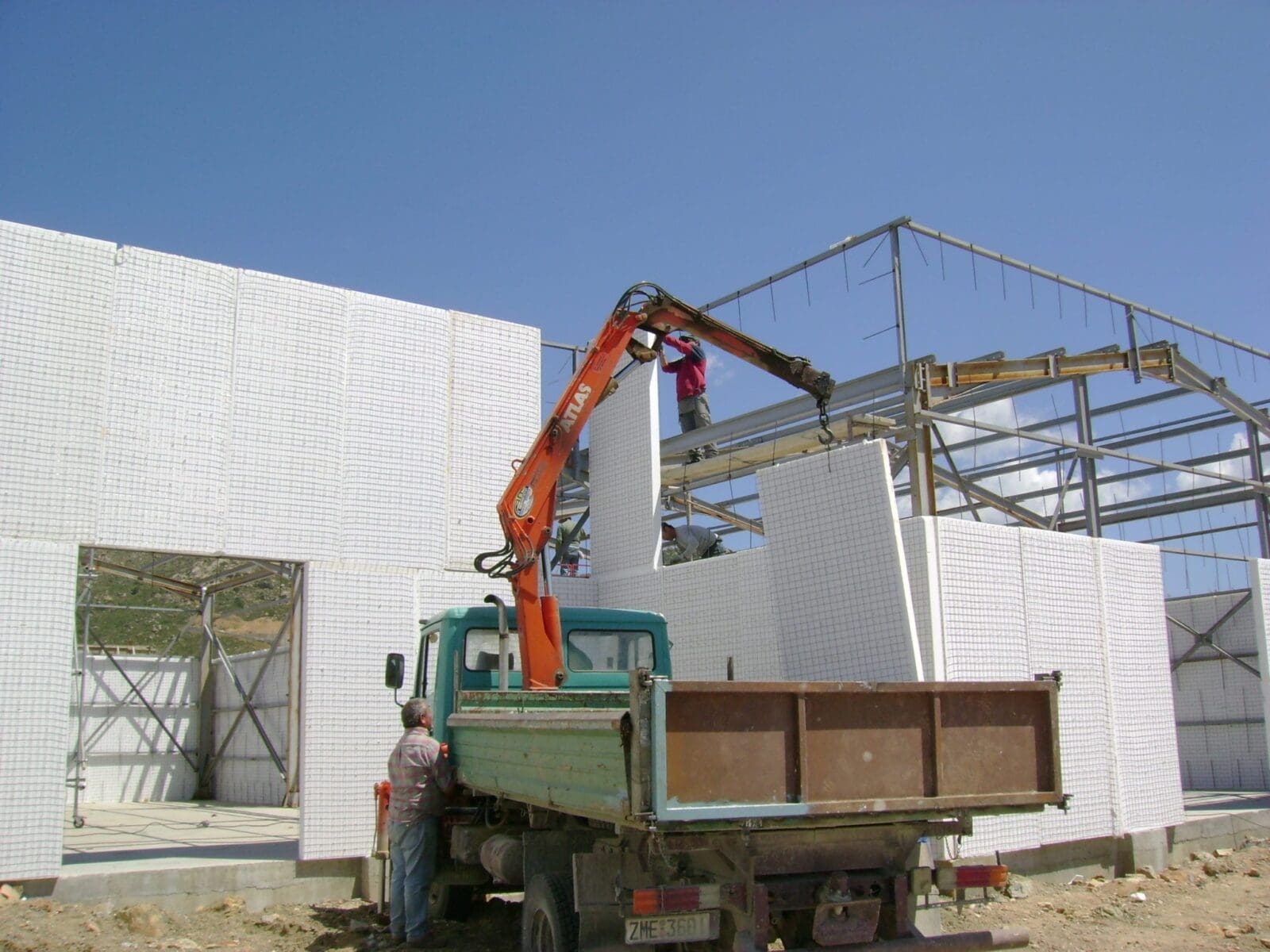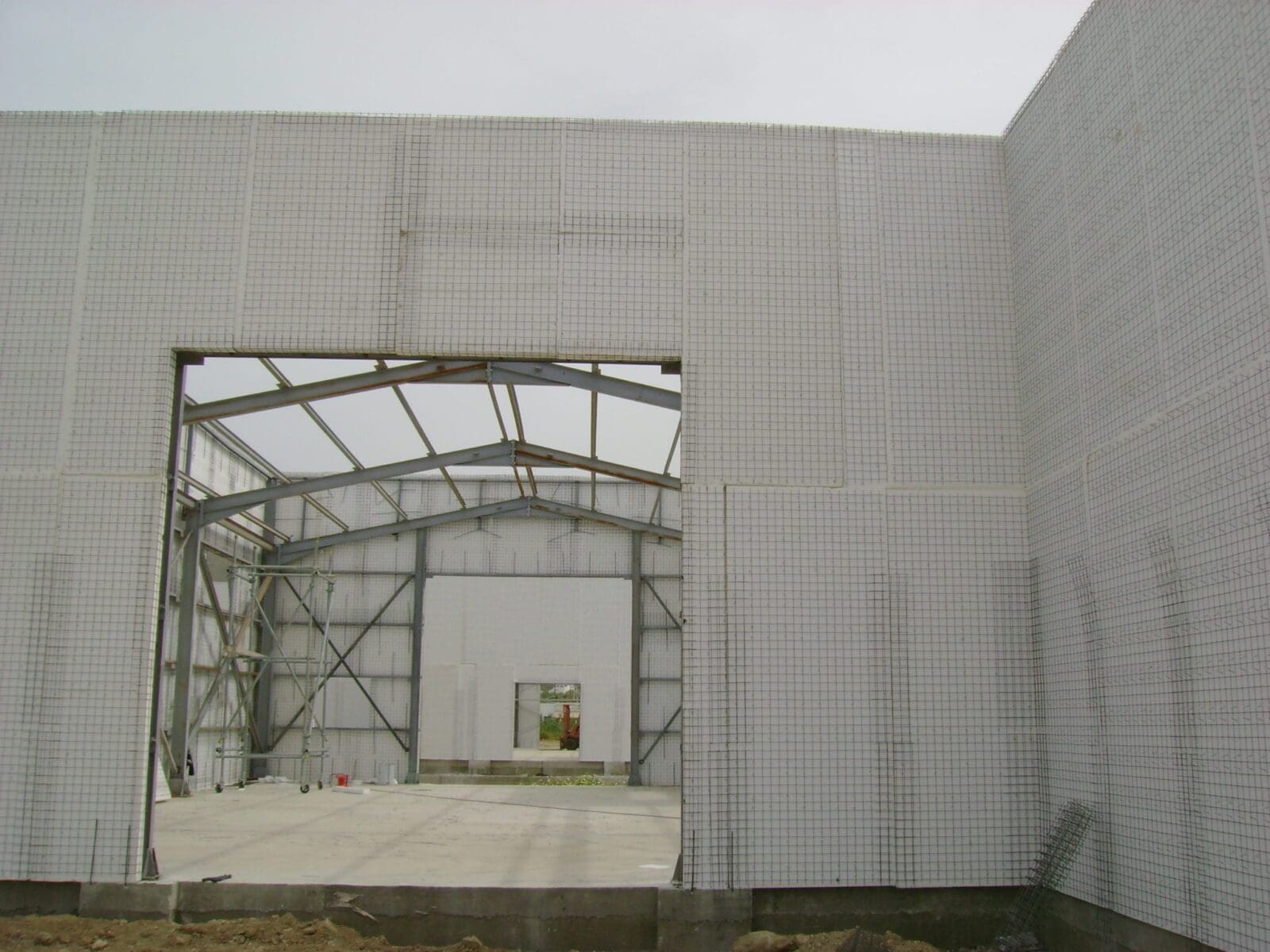 Εφαρμογή του συστήματος οπλισμένης τοιχοποιίας 3D Panel σε κατασκευή βιομηχανικού κτιρίου με μεταλλικό φέροντα οργανισμό.