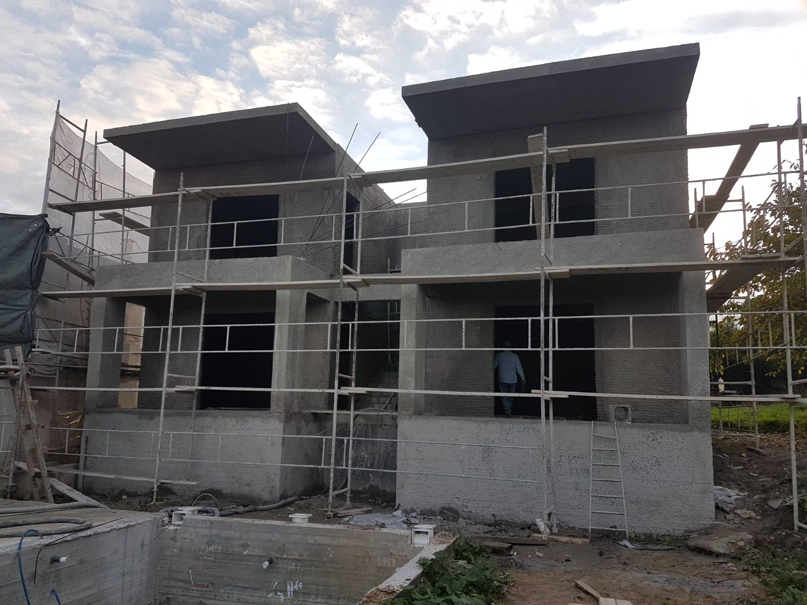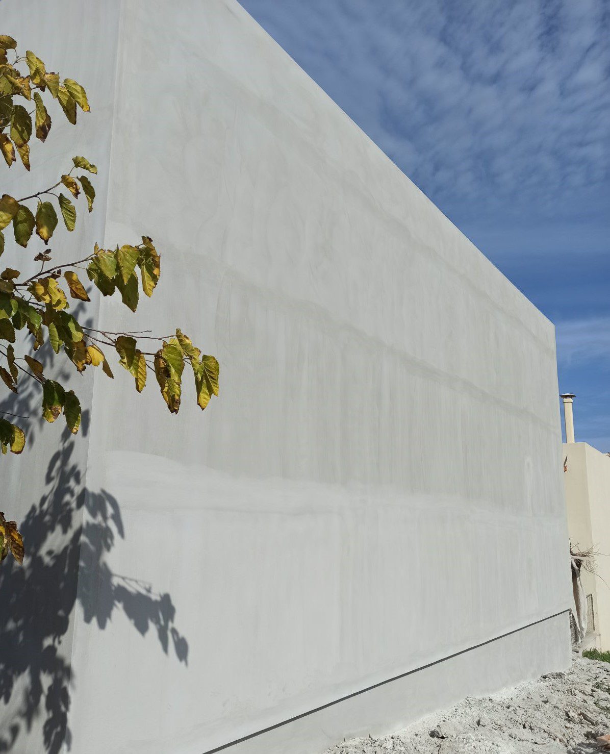 Ολοκλήρωση του συστήματος οπλισμένης τοιχοποιίας 3D Panel με την εκτόξευση ενισχυμένης τσιμεντοκονίας και τελικού επιχρίσματος.